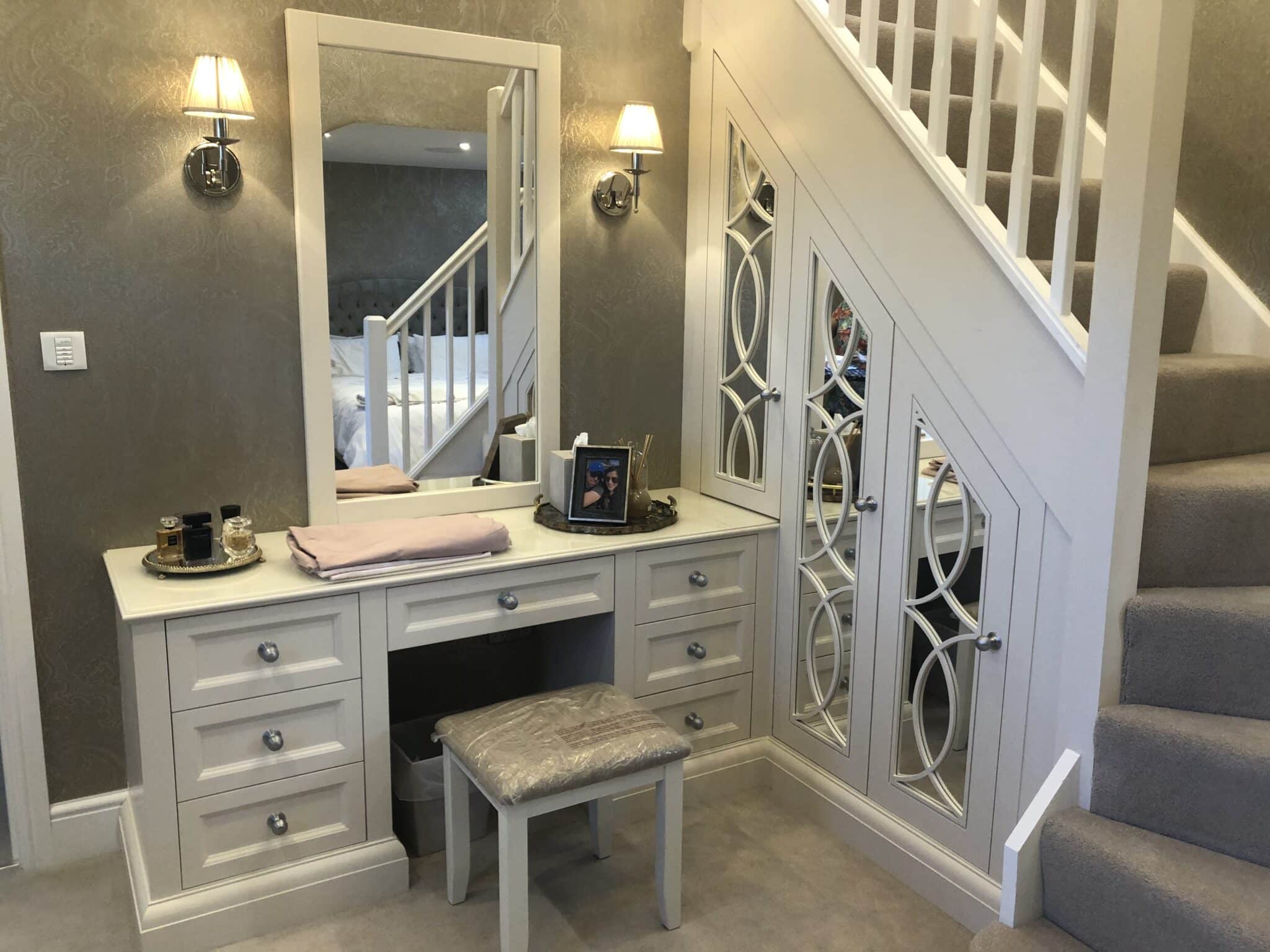 Bespoke wardrobes, beautifully designed and built to our specification. Installed with real care and attention to every little detail. The end result looks fabulous.