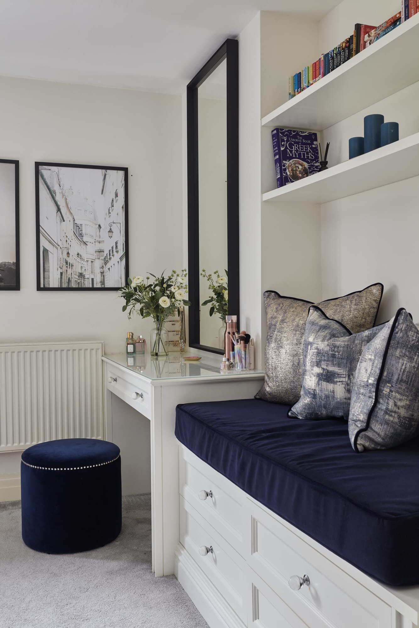 Transform your daily routine with a custom made dressing (or makeup) table. Typically including a table, drawers, mirror and a seat.