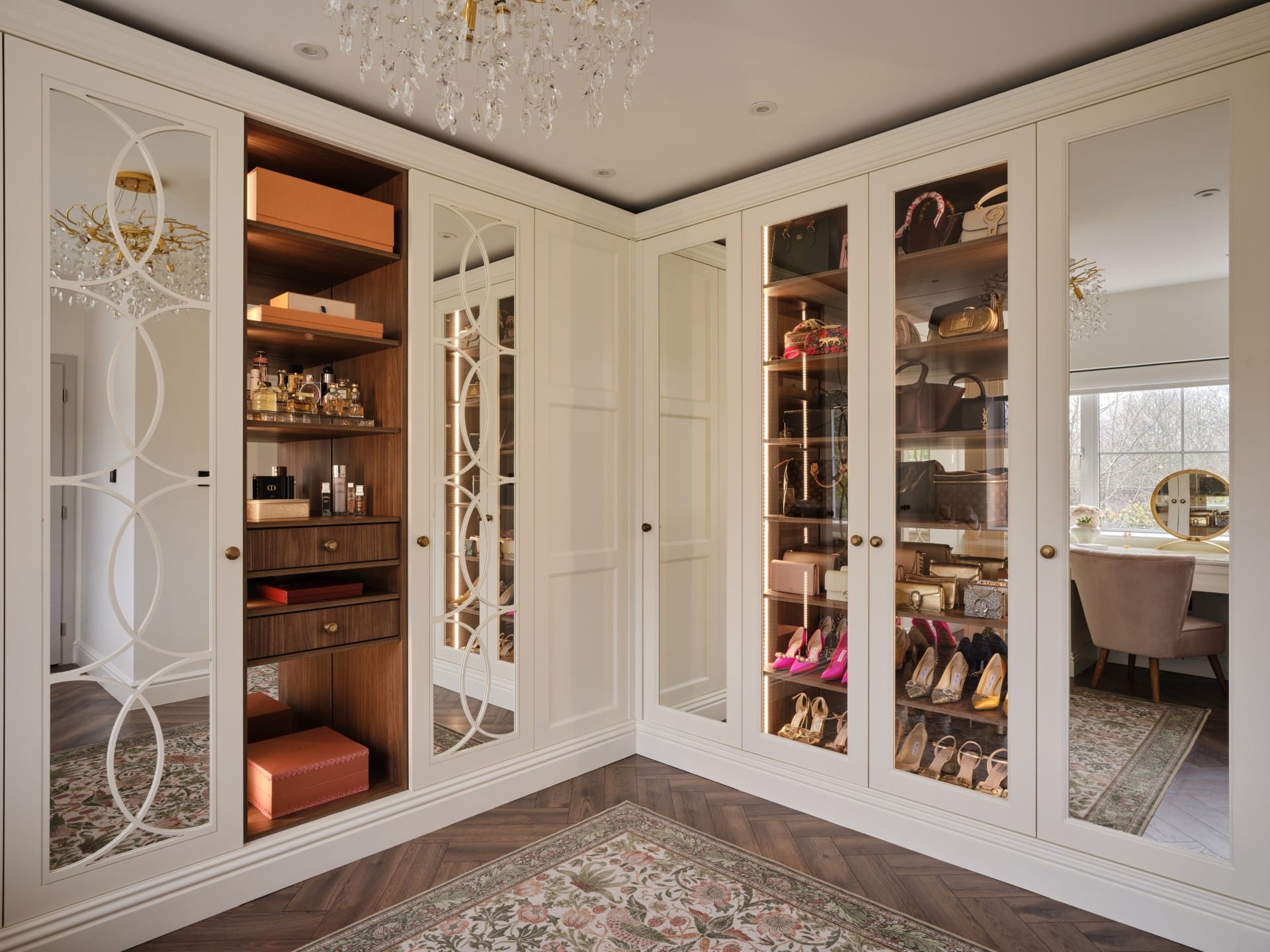 Organise, protect and beautifully showcase your favourite designer handbags with bespoke shelving and illuminated display compartments.