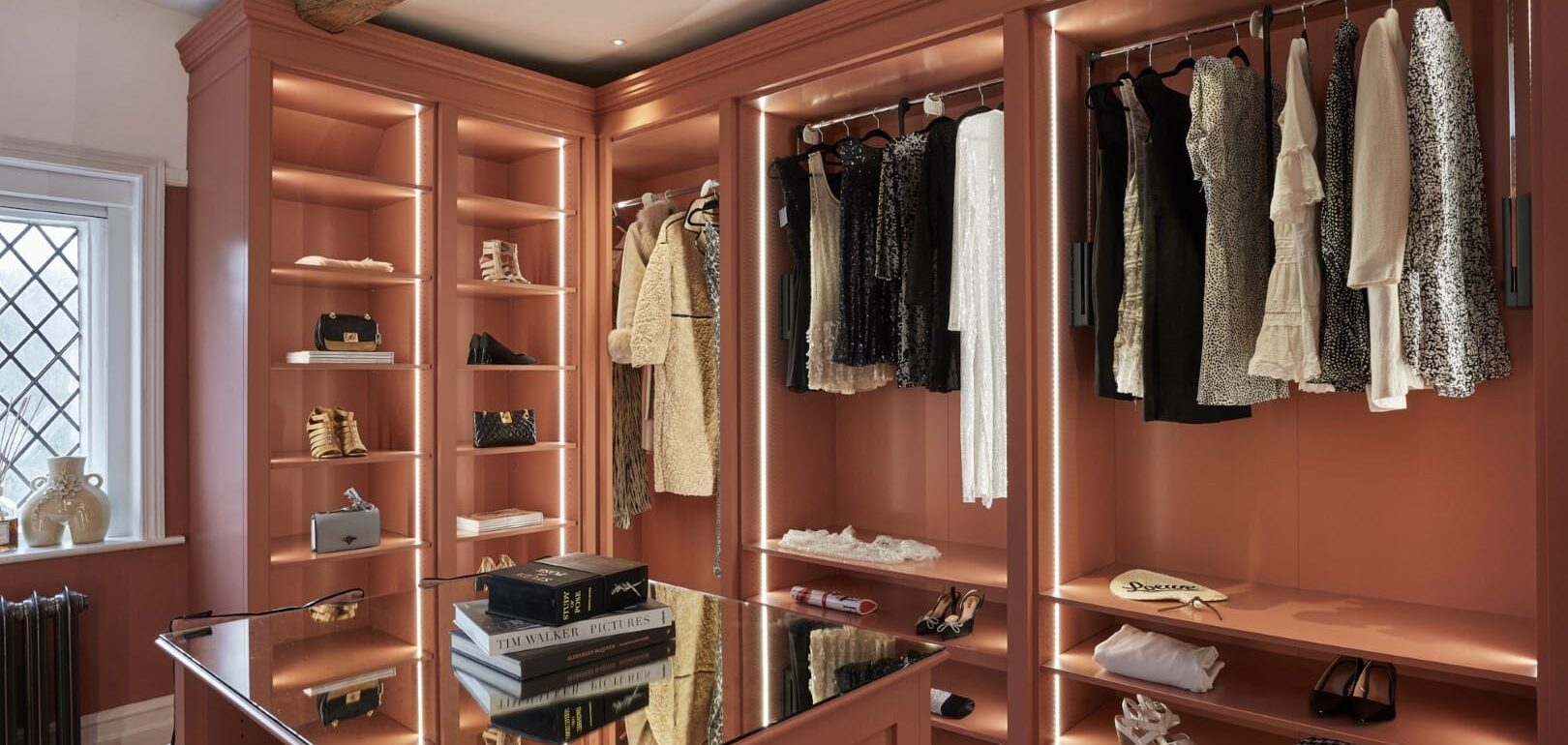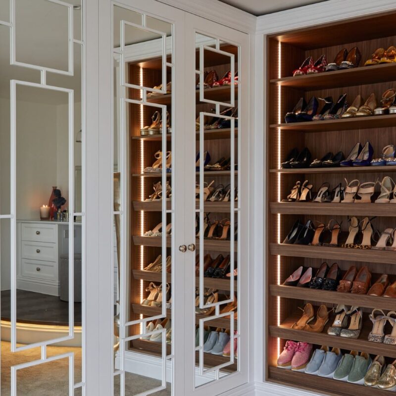 With illuminated shelving and elegantly framed sections, a walk-in design that incorporates open-fronted areas provides easy access to your favourite outfits and beautifully displays your collection – all whist maintaining a sense of effortless sophistication.